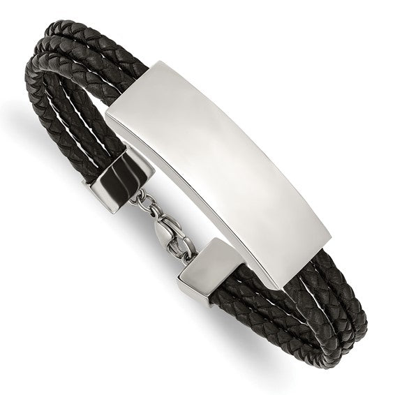 STAINLESS STEEL & LEATHER TRIPLE STRAND MENS BRACELET