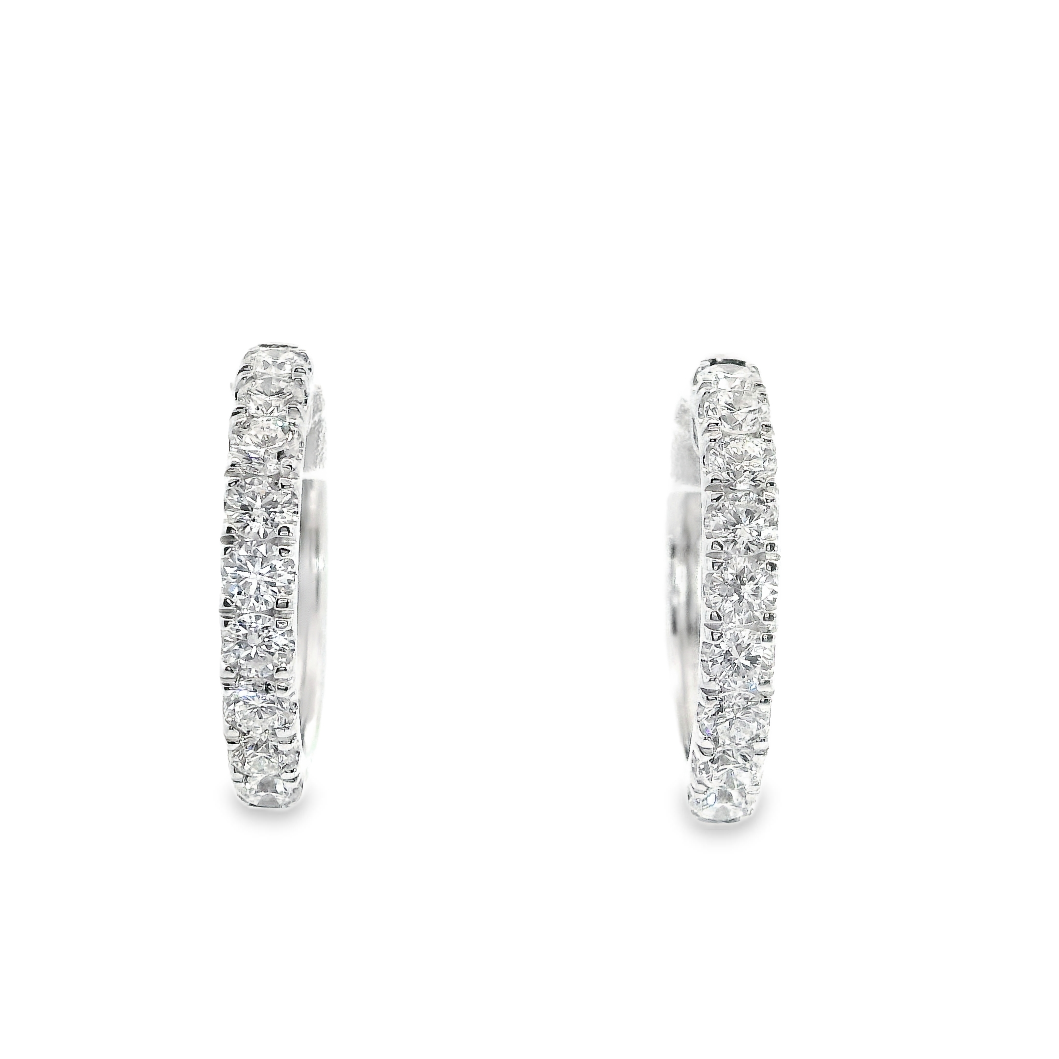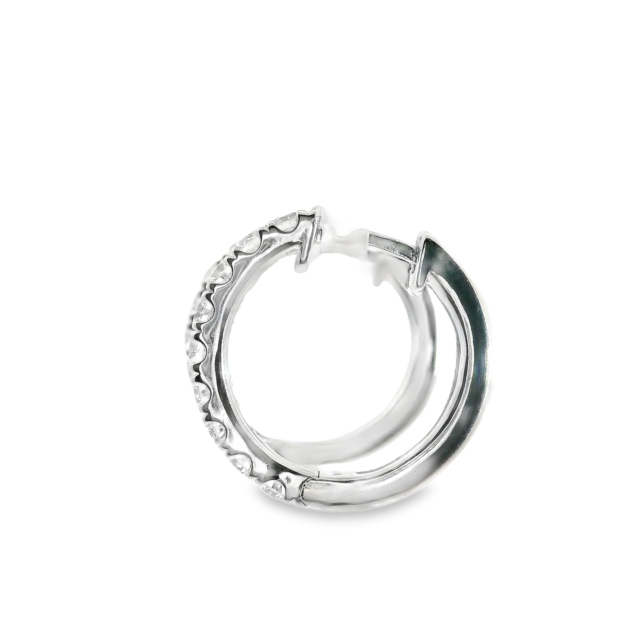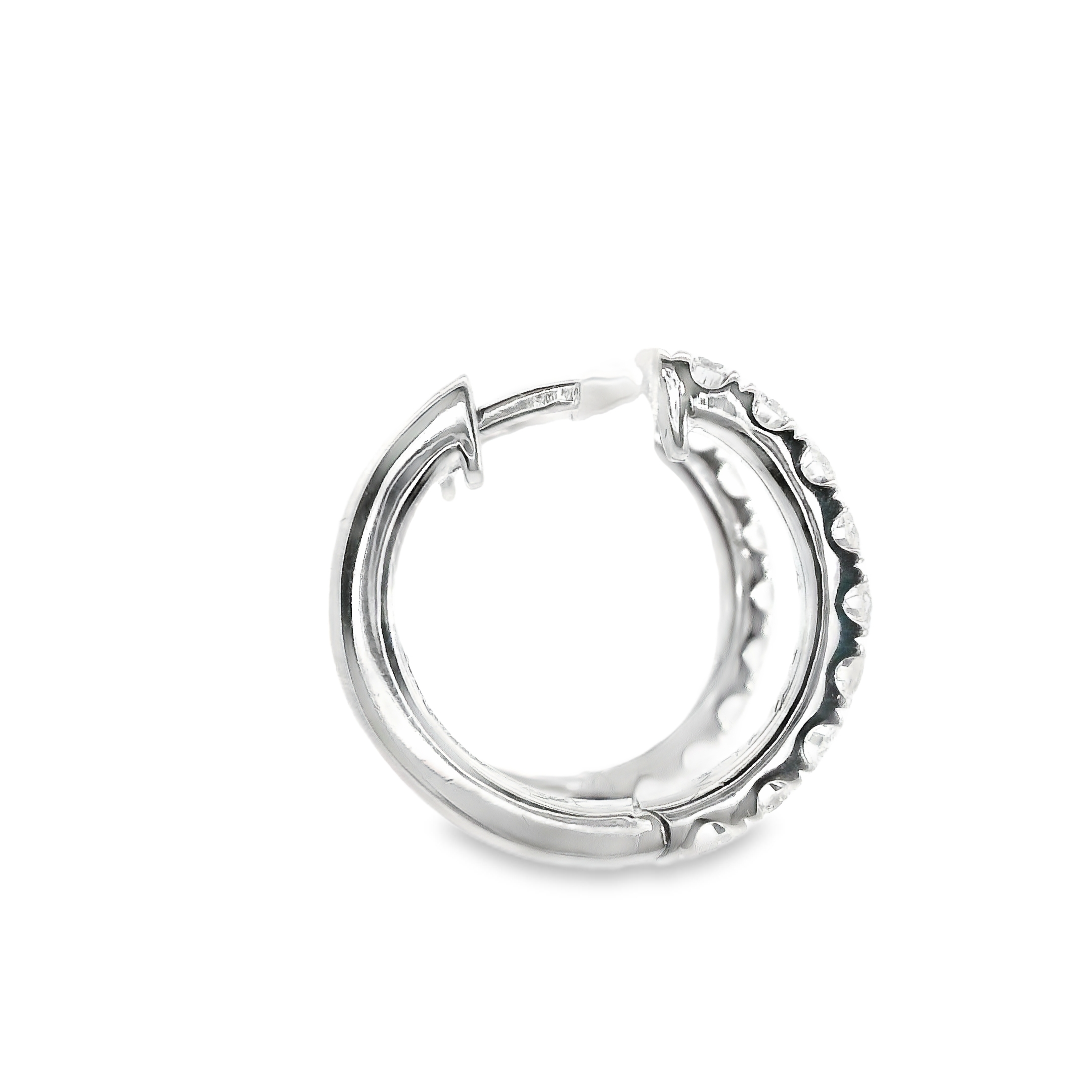 The earrings are sterling silver hoops with LAB GROWN DIAMONDS prong set in the front of each silver hoop. The diamonds total 1.00 CT TW. The hoops are approx 3/4" in diameter.