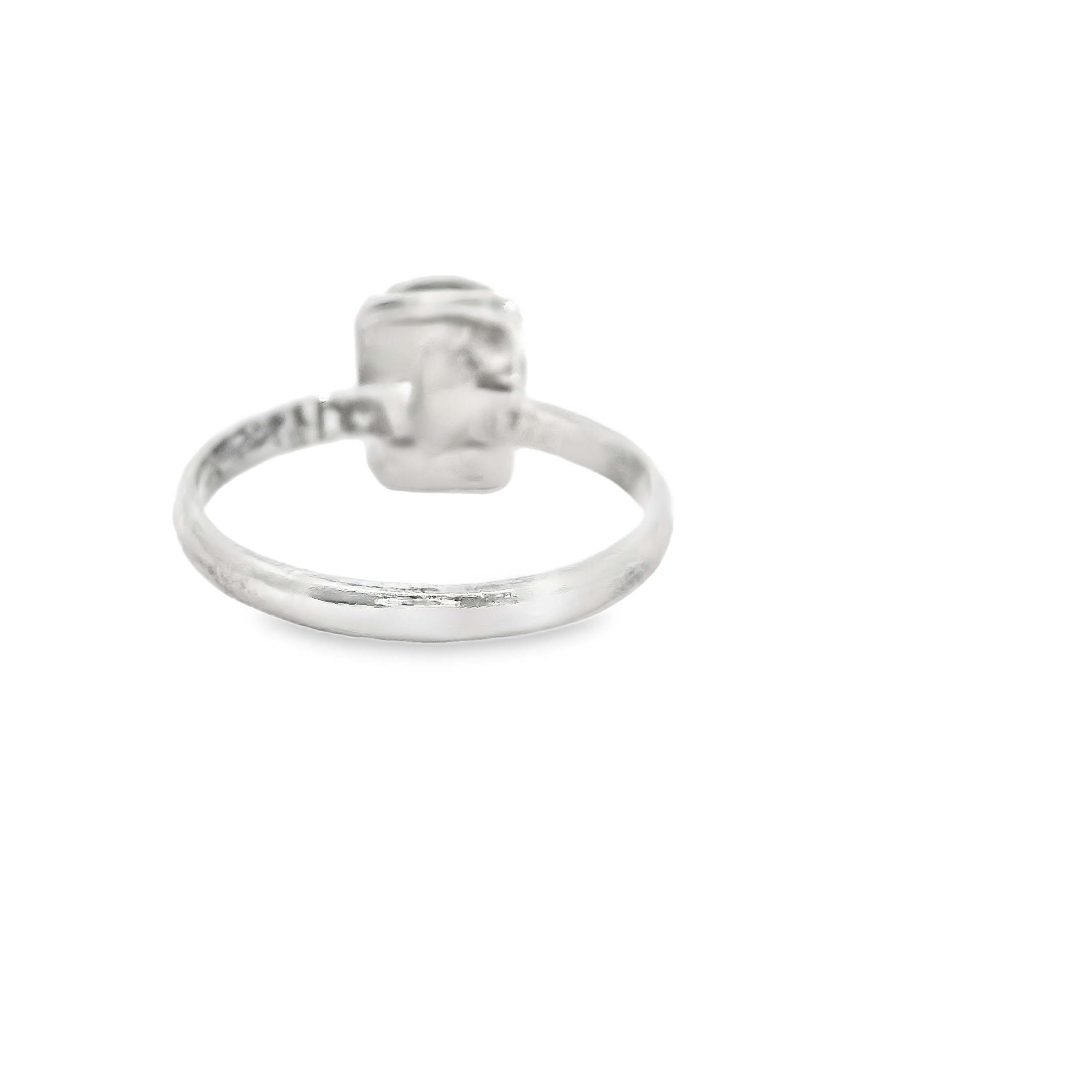 This estate ring is sterling silver ring with an oval labradorite gemstone bezel set in the center. It is a size 5.5