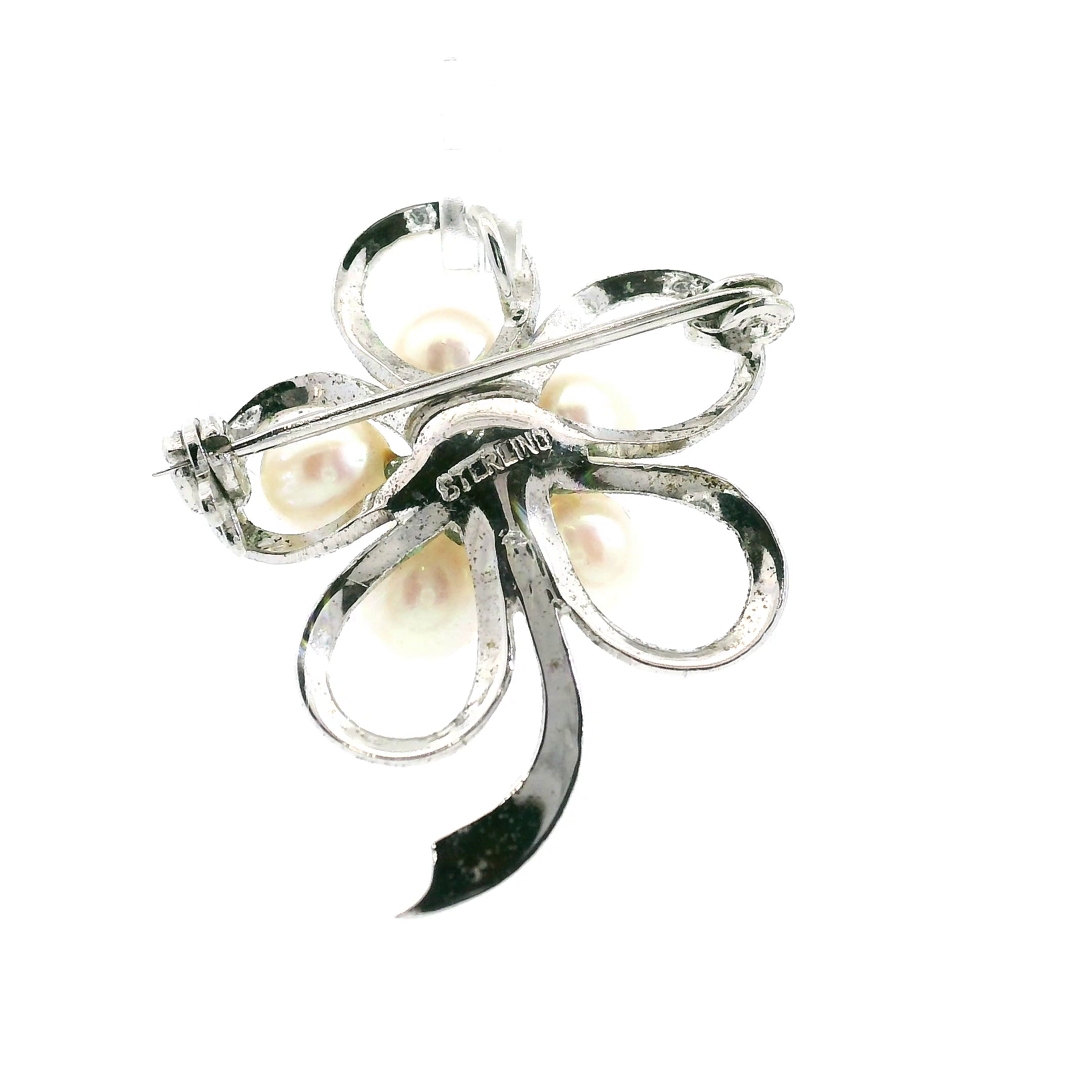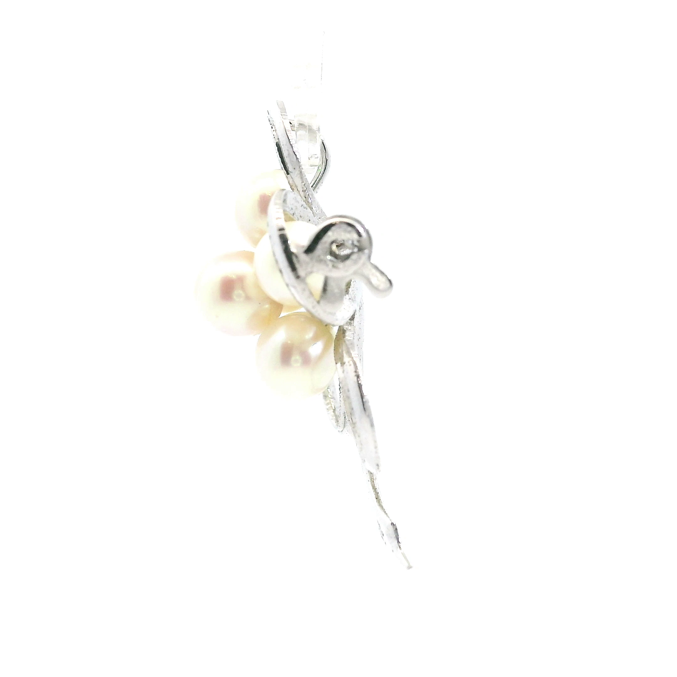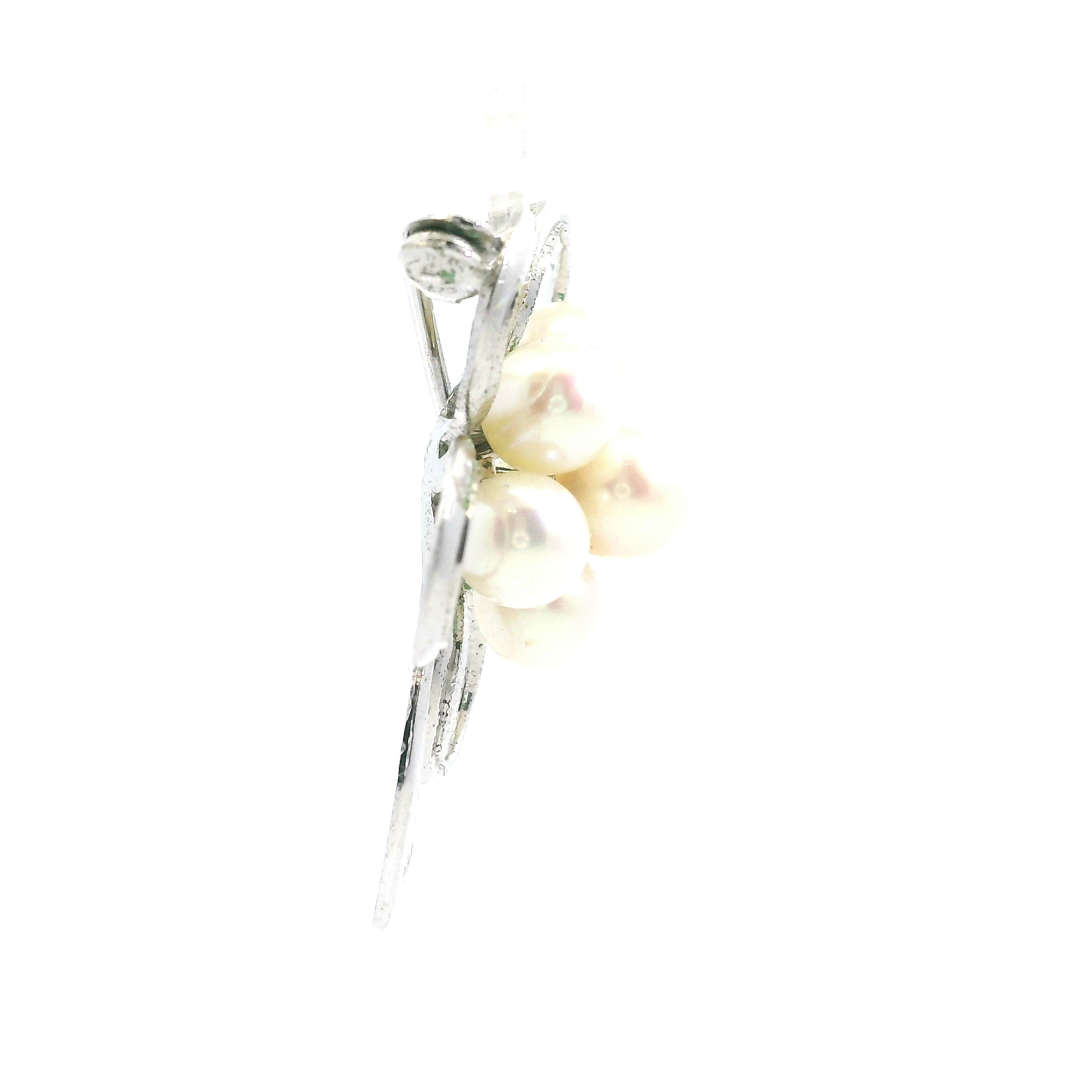 This estate pendant is a flower designed pendant with a cluster of pearls set in the center of the flower. There is also a pin on the back so it can be worn as a brooch as well.