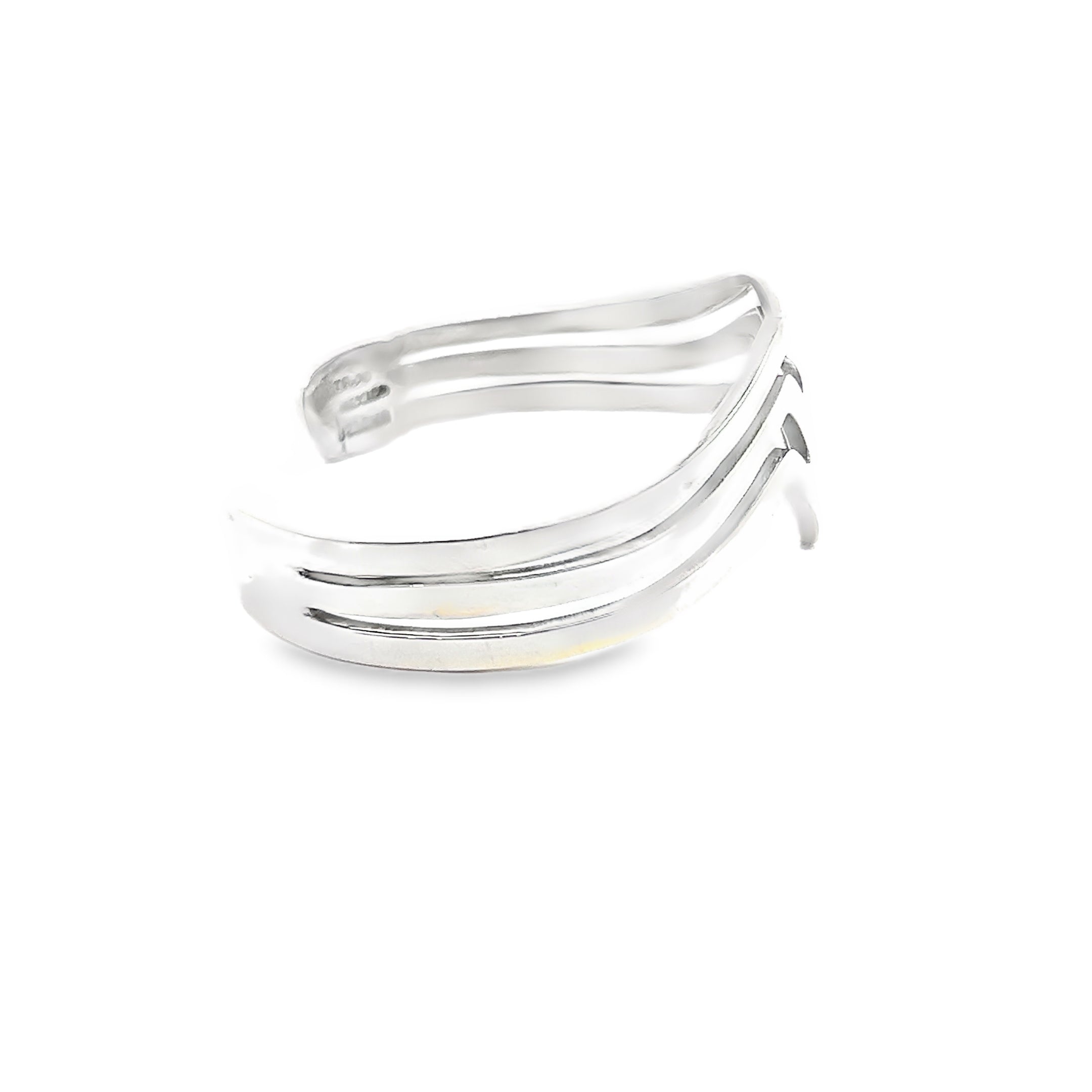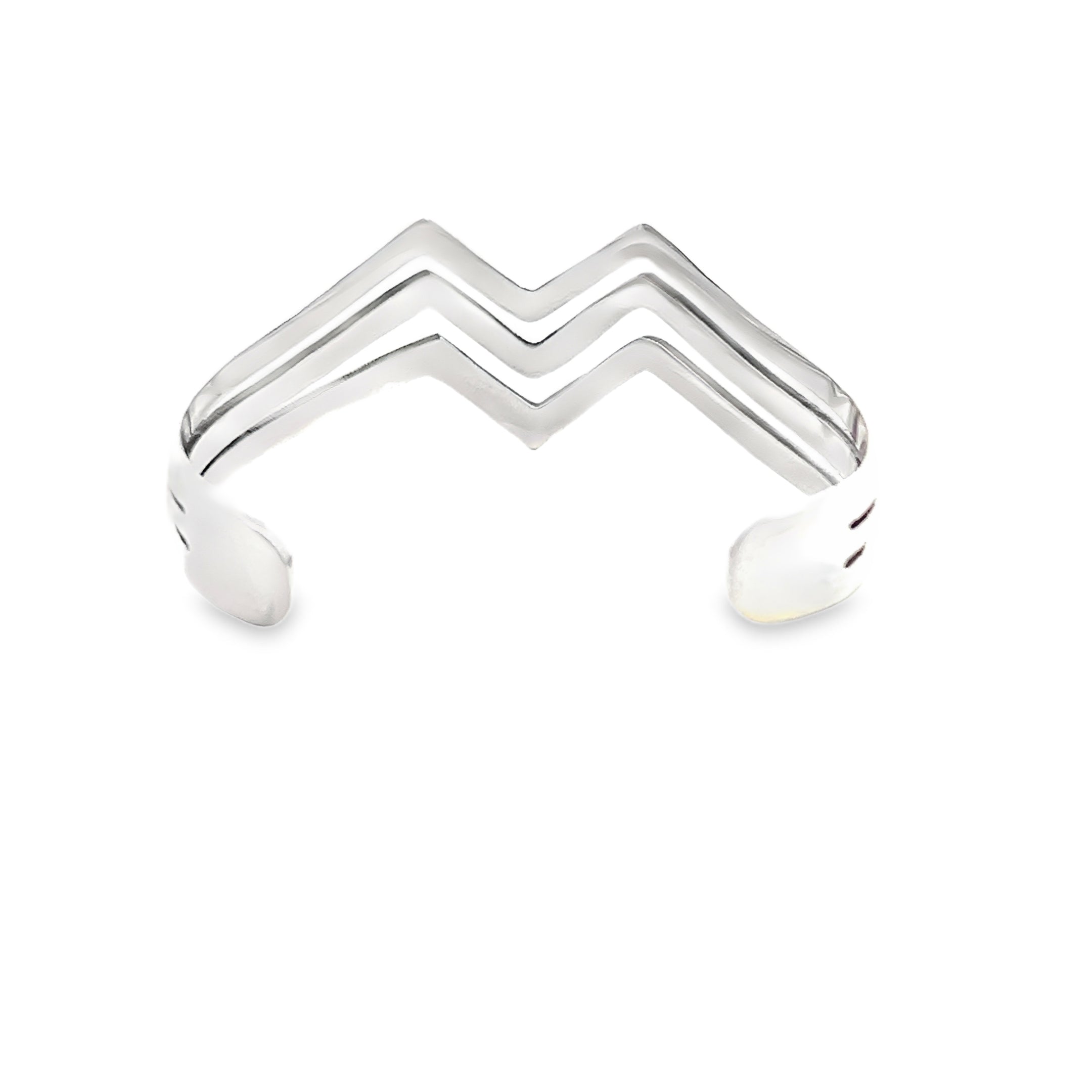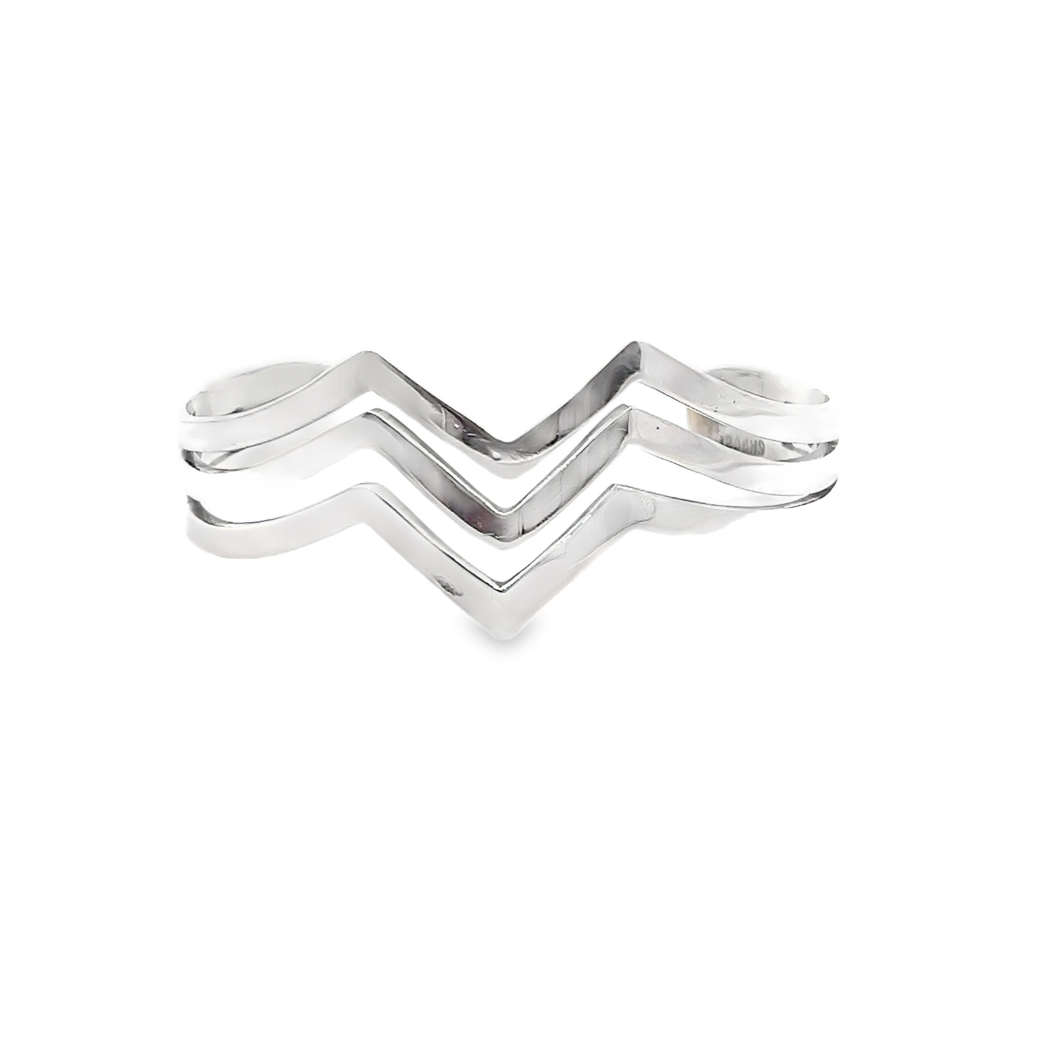 This estate bracelet is a sterling silver cuff style bracelet with 3 rows of silver in a zig zag fashion.