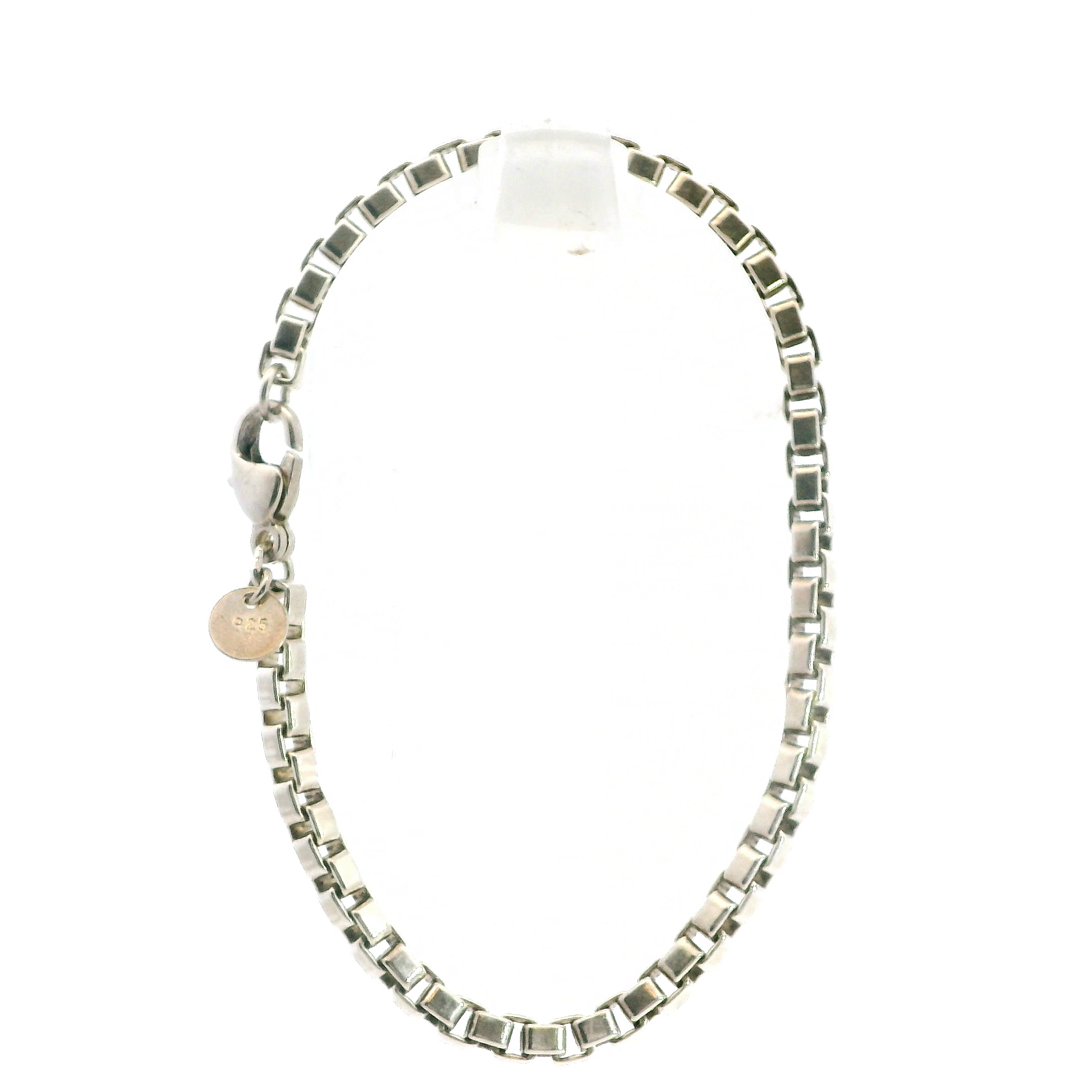 This Tiffany & Co. bracelet is a sterling silver venetian box link bracelet. The bracelet is 7.5" long and 4.0mm wide.